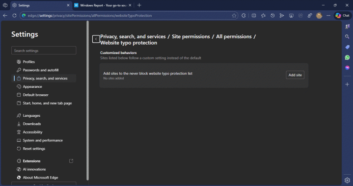 IT之家11月14日消息,据科技媒体WindowsReport今天报道,微软正在为Edge浏览器测试一项新功能,可让用户将自己信任的网站或域名忽略拼写错误警告。