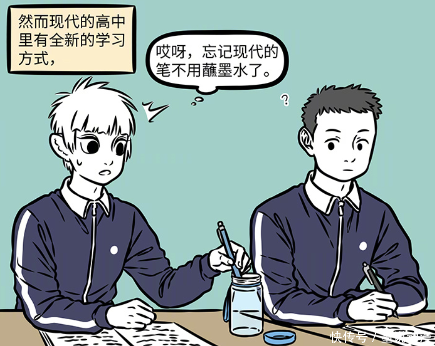 在高中生活一段时间之后,十一月还是没有忘记原来的习惯,拿自动铅笔去沾水。全新的学习方式,十一月需要时间适应。十一月也经常会忘记一些现代的习惯,蘸墨水这种方式,只有毛笔才用得到。